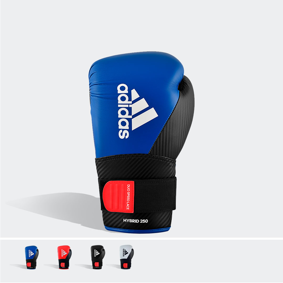 As luvas de boxe adidas Hybrid 250 são projetadas com um formato ergonômico para acelerar a execução do movimento e dar o melhor soco em treinos leves ou intensos.